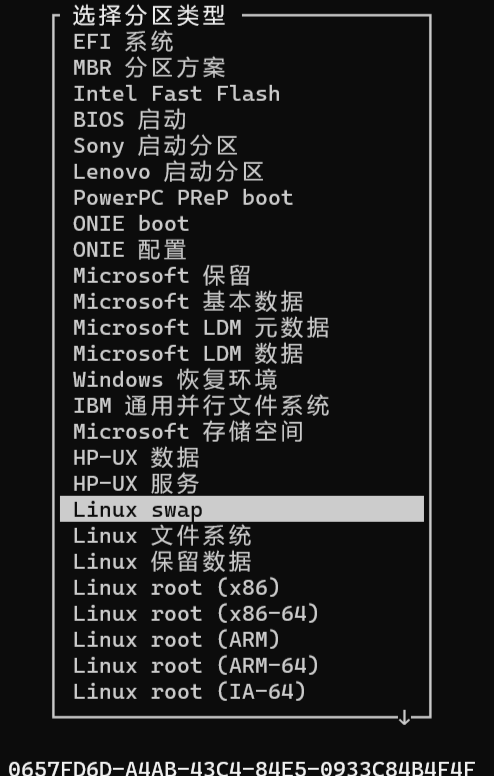 已将分区“Linux filesystem”的类型更改为“Linux swap”。